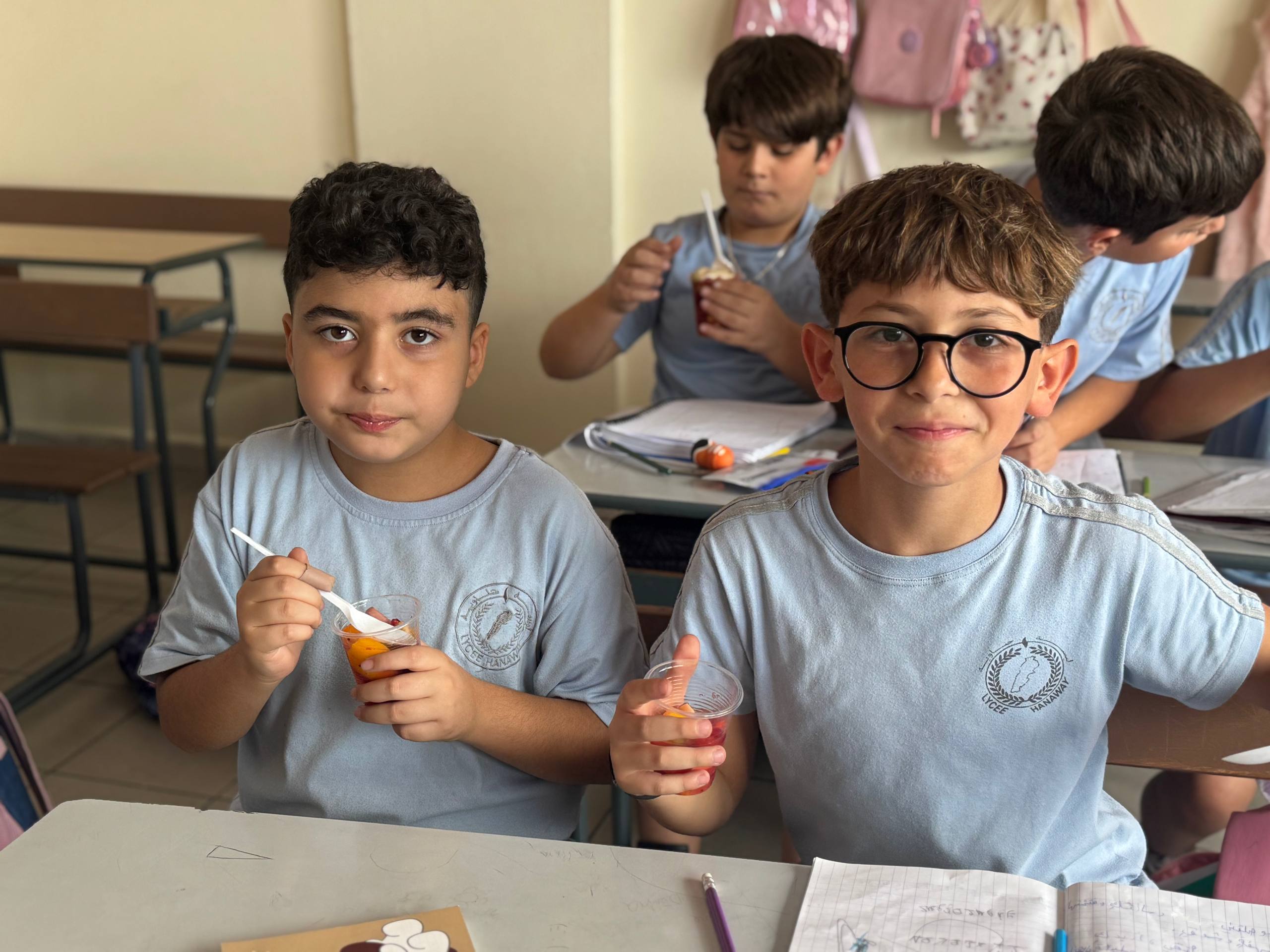 نظّم تلامذة الصّفّ الرّابع فرنسي نشاطًا عَمَليًّا ممتعًا ضمن المنهج التّعليمي، إذ قاموا بإعداد سَلَطة فواكه طازجة. \"????\"